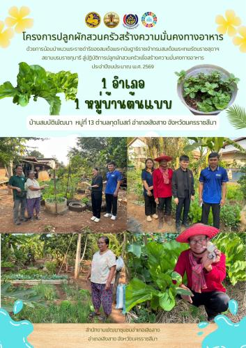 ร่วมดำเนินงานน้อมนำแนวทางพระราชดำริของสมเด็จพระกนิษฐาธิราชเจ้า กรมสมเด็จพระเทพรัตนราชสุดาฯ สยามบรมราชกุมารี สู่การปฏิบัติการปลูกผักสวนครัว เพื่อสร้างความมั่นคงทางอาหาร ขยายผลสู่การปฏิบัติในระดับครัวเรือน ให้ครัวเรือนปลูกพืชผักสวนครัว ผักพื้นถิ่น พืชสมุนไพร และไม้ผล โดยเน้นการปลูกพืชหลากหลายชนิดที่นำมาบริโภคภายในครัวเรือน ส่งเสริมให้ครัวเรือน "ปลูกทุกอย่างที่กิน กินทุกอย่างที่ปลูก" เพื่อให้มีพืชผักผลไม้ที่จำเป็นต่อการบริโภคในชีวิตประจำวัน