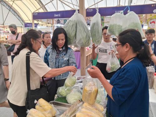 ในการนี้ นางกนกรัชต์ วงษ์กาฬสินธุ์ พัฒนาการจังหวัดนครราชสีมา พร้อมด้วยนางสาวปุญญิสา คำนาค ผู้อำนวยการกลุ่มงานยุทธศาสตร์การพัฒนาชุมชน ร่วมเยี่ยมชม และซื้อผลผลิตสินค้าทางการเกษตรจากแปลง โคก หนอง นาอำเภอเสิงสาง